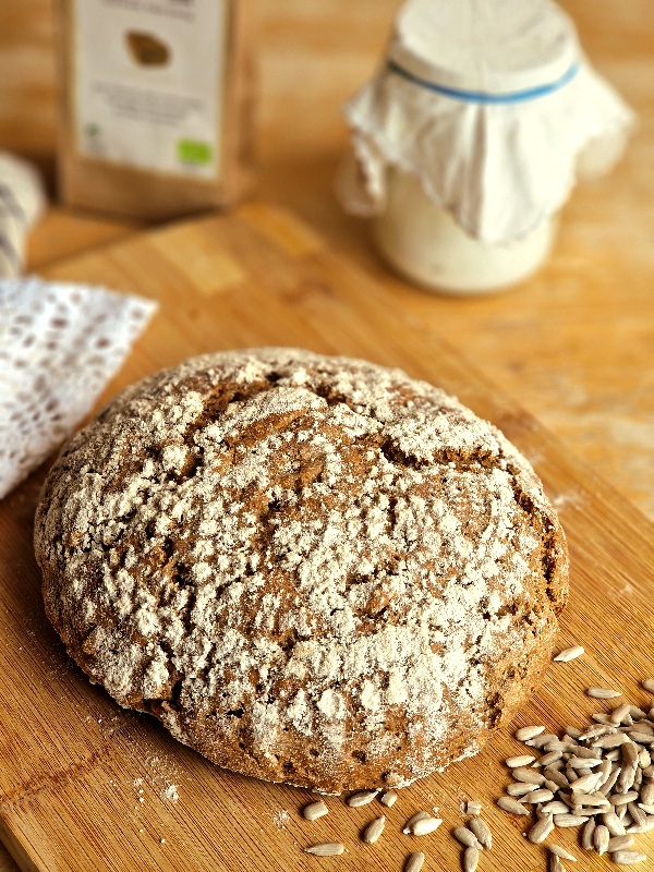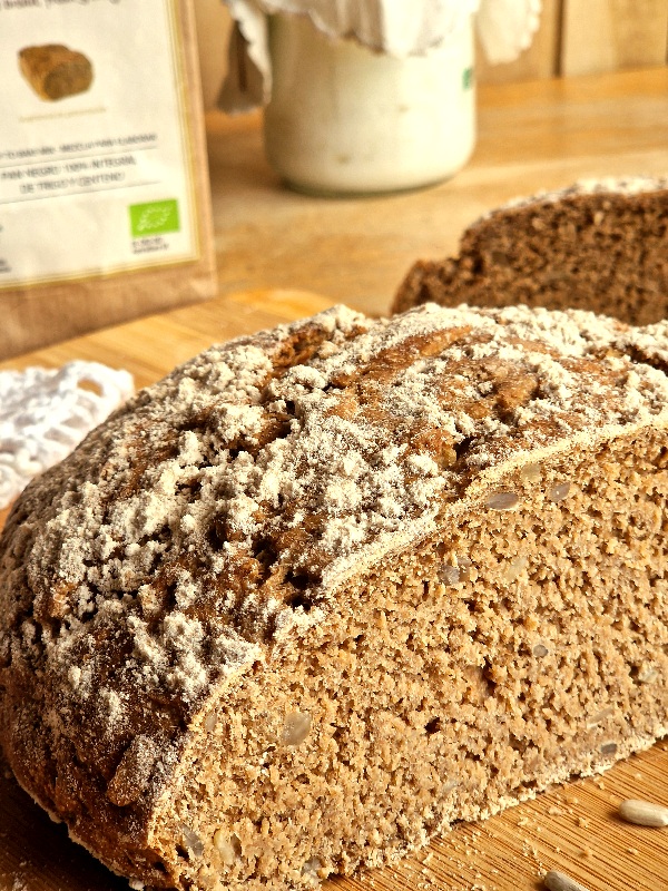 Puedes hacer este pan con la mezcla orgánica para pan negro 100% integral, o con Campesino o Country White.