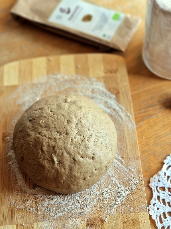 - Utiliza el programa Dough o Masa de tu panificadora. Al terminar, sobre una superficie enharinada dale la forma de hogaza, déjalo crecer bajo un paño de algodón limpio un par de horas.